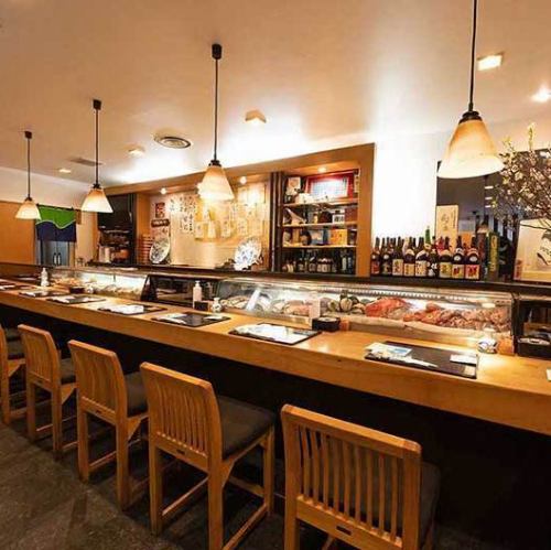 カウンター席は楽しく会話を愉しみながらゆったりと、お料理をお召し上がり頂けます。お酒との相性もいい新鮮な食材を生かした料理を多数ご提供しております。単品メニューのお好み寿司は季節のものもご用意しておりますので、お気軽にスタッフまでお声掛け下さい。